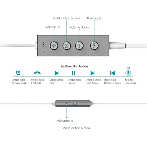 - Telecomando sul filo con BASS BOOST - Il tasto multifunzione e altri pulsanti di controllo consentono di gestire le chiamate, controllare la riproduzione audio/video o utilizzare Siri. Tramite il pulsante BASS BOOST è possibile anche la modulazione dei bassi ricchi ad effetto stereo surround per la migliore esperienza d'ascolto.